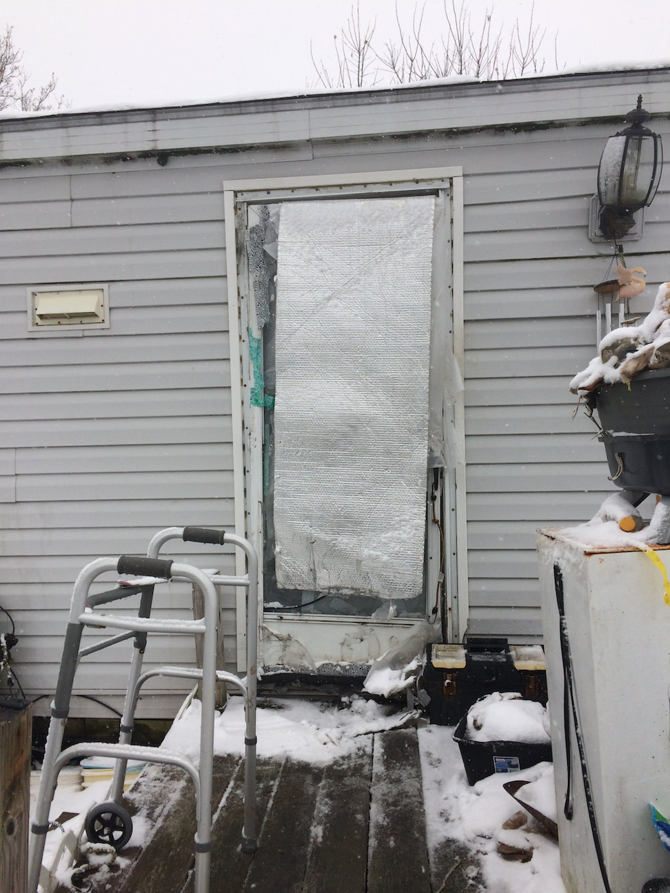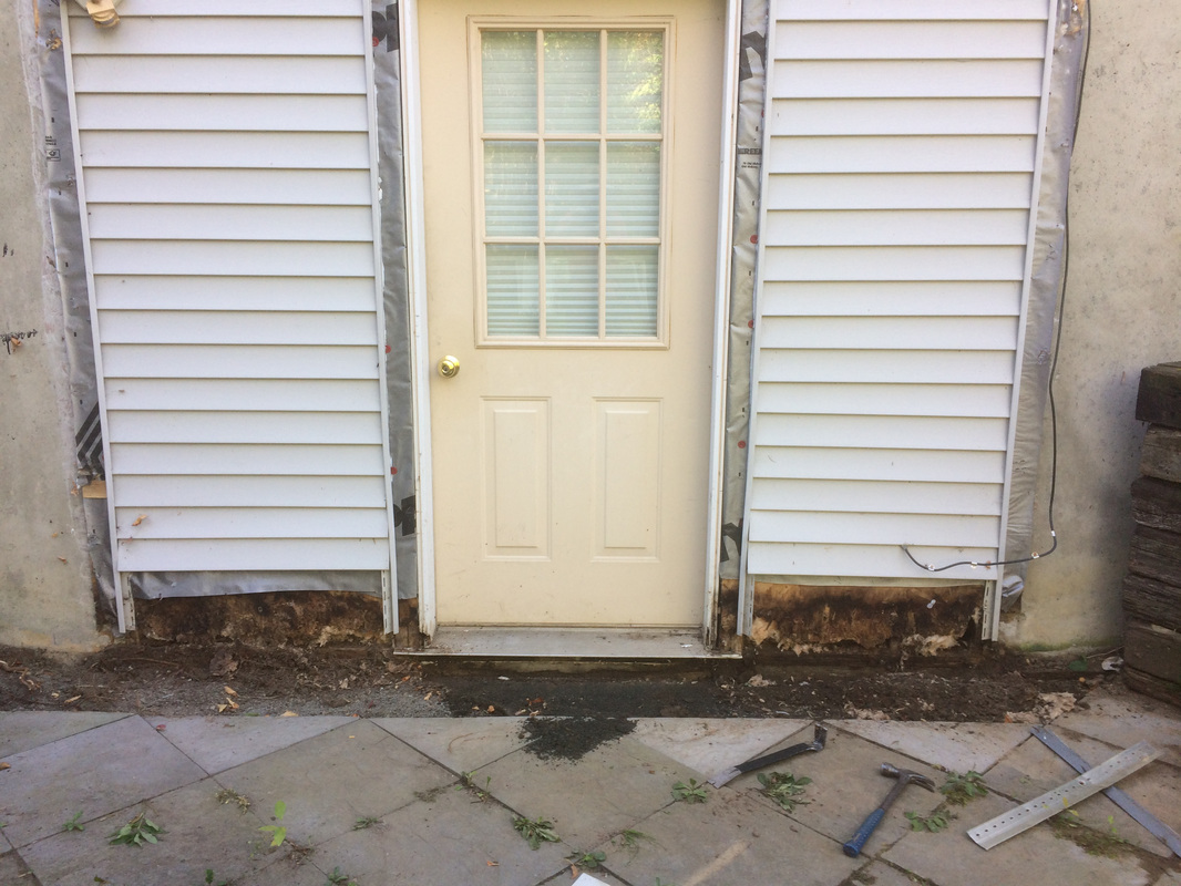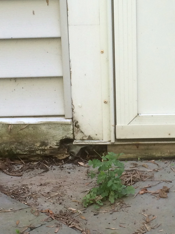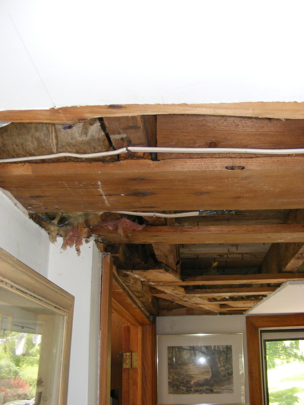 Repair consisted of removal of vinyl siding, cutting away rotted aspenite sheathing, removal of wet fiberglass insulation, door removal and rot in framing.