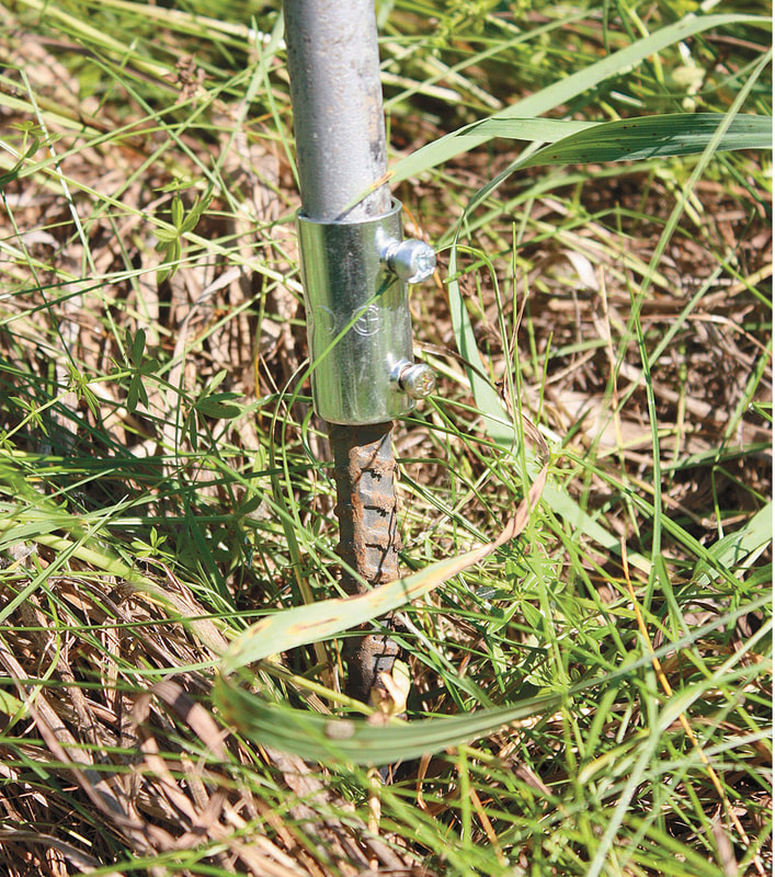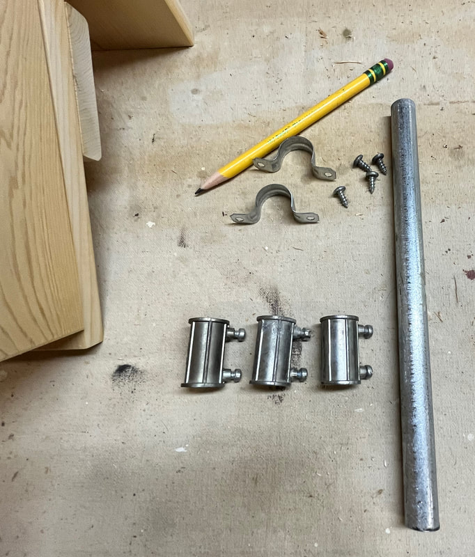 Okay, that's the kit as provided. The next thing you need to do is make your way to a hardware store or lumber yard and get at least an eight foot pice of this conduit. It's 1/2" electrical conduit. You will also need to get at least 2 feet of 1/2" rebar like that used in construction. Sometimes people have pieces of this stuff hanging around their garage from projects they've done or even just laying around in the grass out back of the barn so to speak. Take the rebar, once you get it, and pound it into the ground using a mallet, leaving just enough of it sticking above the ground to mount the third connector, provided with the kit onto it. Then, attach the long piece of conduit you just bought to the birdhouse. Make sure you tighten the set screws real good so the blue bird house doesn't spin around and fall off and make the birds dizzy! Finish the job by putting the end of the conduit over the rebar sticking out of the ground and tighten the set screws down there and you are done. To buy the mounting kit click here.