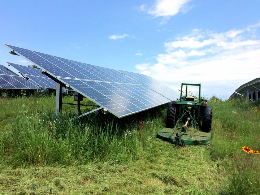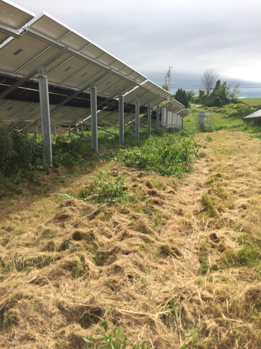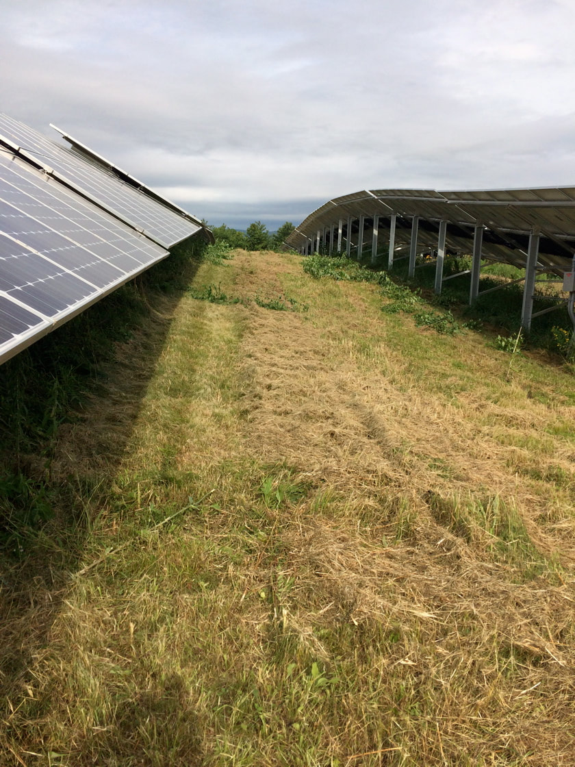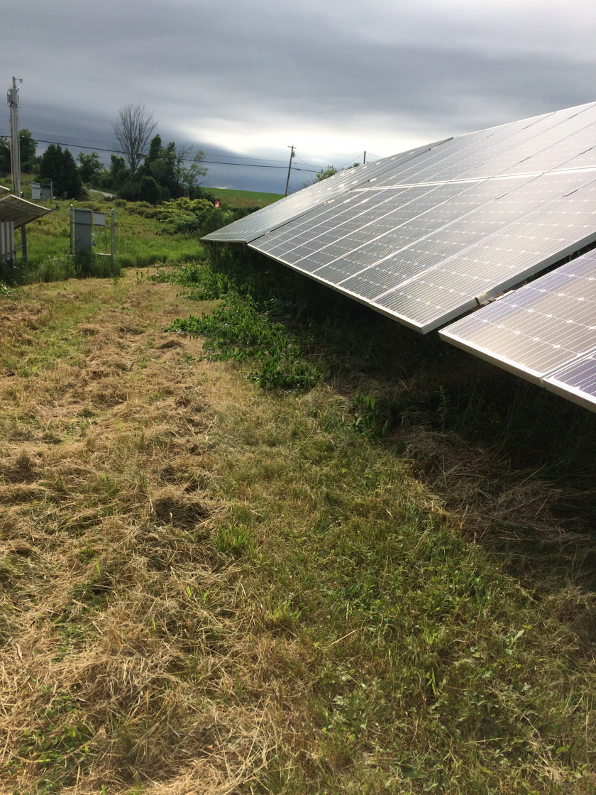 Mowing around a solar array to knock down brush and field plants that cast shade on the solar panels. I no longer do this type of work but often display past work history to demonstrate the length and breath of my skill set.