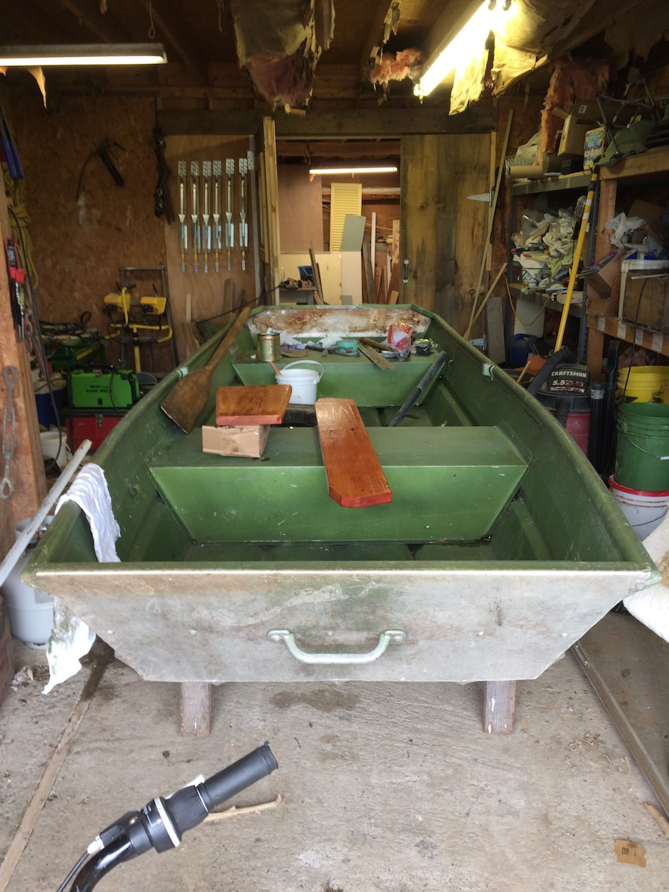 The Jon Boat in the picture to the left was left to rot under a tree for ten plus years. It was dirty and the transom pieces were rotten.